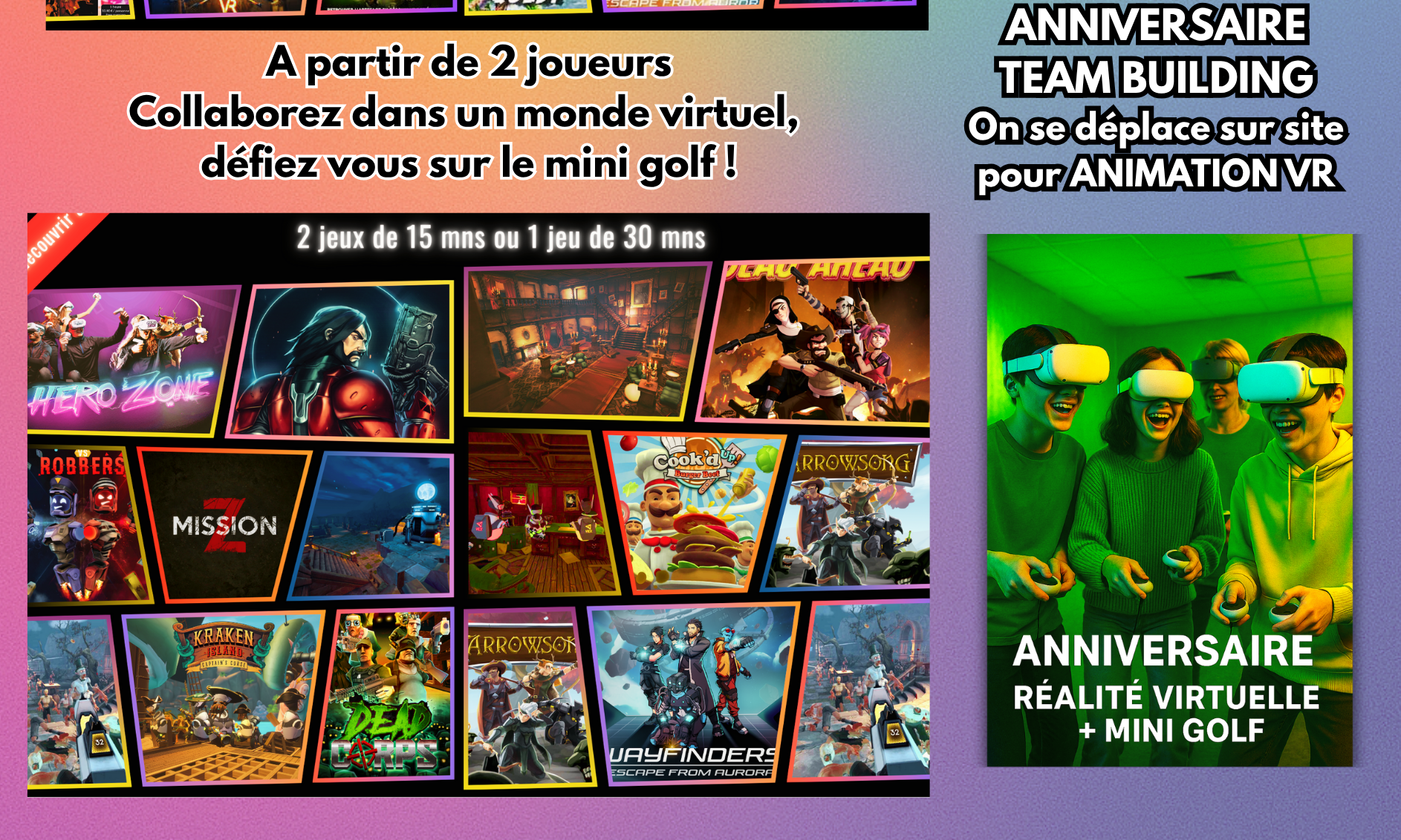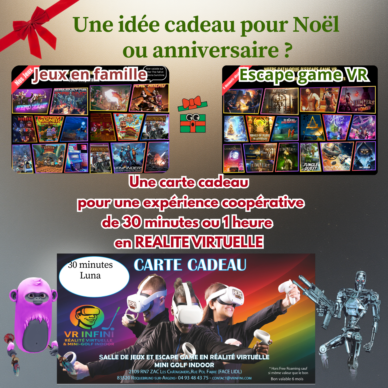 – Espace en free roaming de 50 m² – Animation extérieure pour vos évènementsBONS CADEAUX et ANNIVERSAIRE
