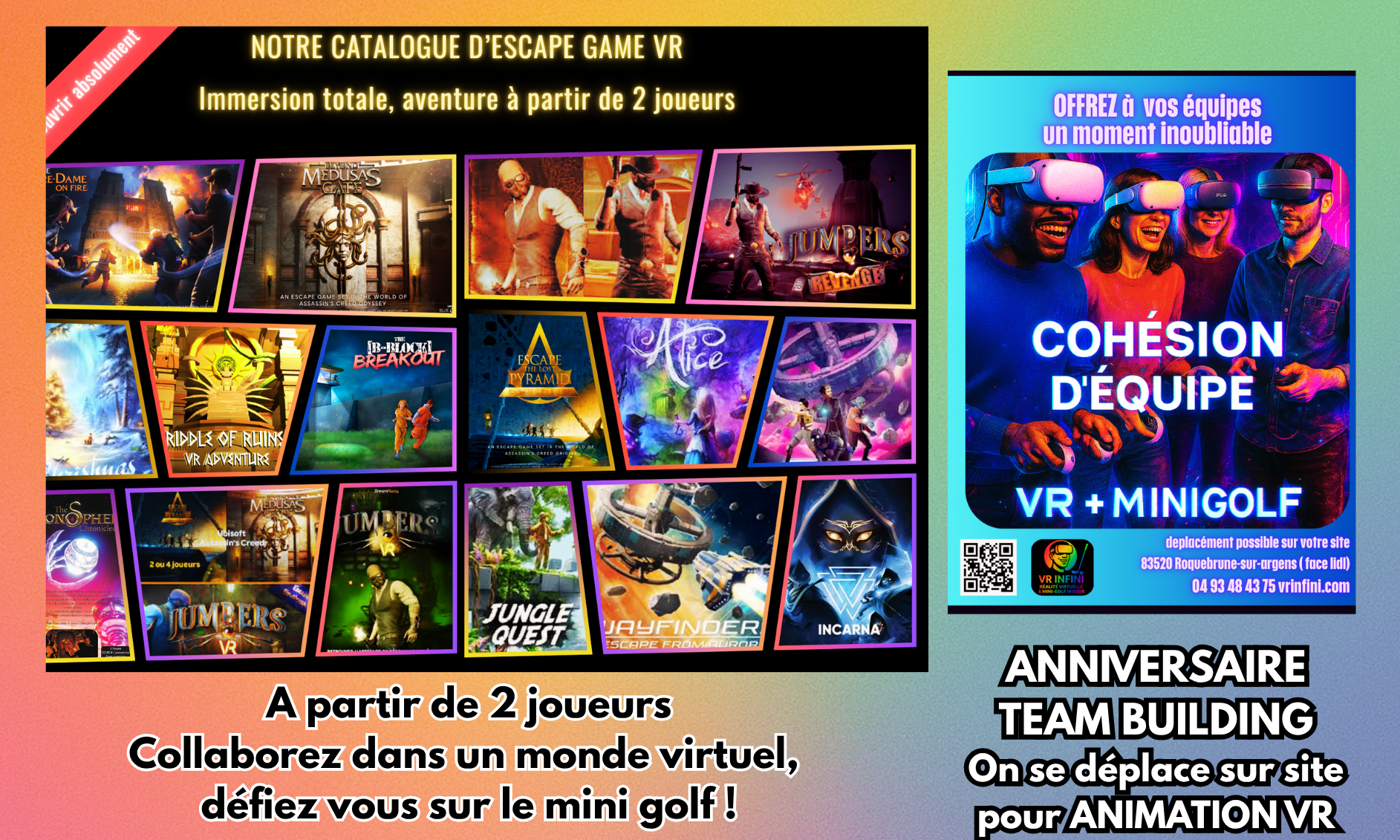 Nous sommes ouverts tous les jours pendant les vacances, scolaires. Nos expériences VR sont uniques dans le Var